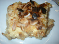 Unte um pirex com manteiga e polvilhe com açúcar, parta os pêssegos aos pedaços pequenos e disponha no fundo do pirex, corte o pão em fatias finas e barre com um pouco de manteiga, disponha por cima do pêssego como se estivesse a fazer uma escada. Reserve.