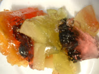A fruta que necessite corte em pedaços (para esta versão usei amoras silvestres, ananás, mirtilos, cerejas e pêssegos), reserve.