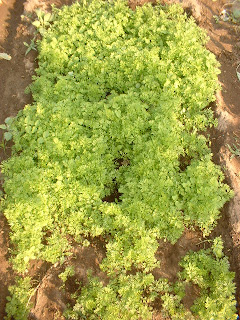 Uma pequena transplantação de cenouras e alfaces,
